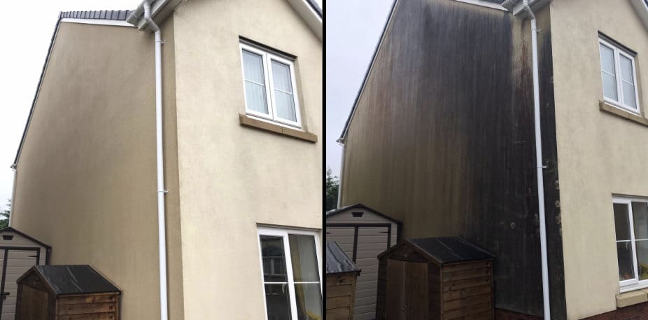 Soft washing is an excellent alternative to pressure washing. We use soft washing chemicals to gently restore surfaces without damaging pointing. This method is a great way of cleaning rendered walls, cladding and most stone work.