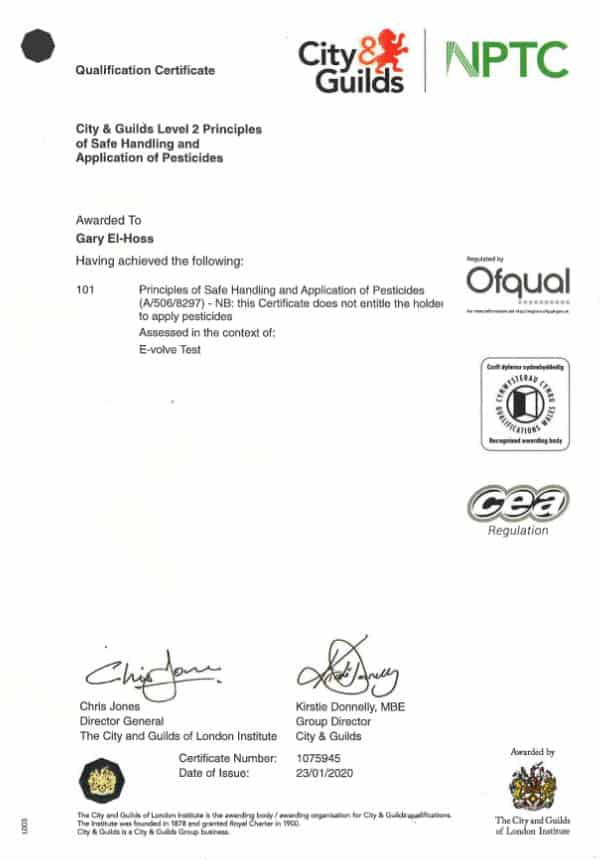 GH Pressure wash are COSH certified (Control of Substances Hazardous to Health) and have level 2 Principles of safe handling and application of pesticides.